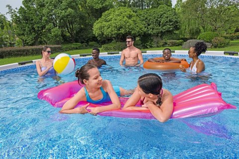 | - odporny na korozje stelaż, - powłoka basenu PVC wykonana w technologii DURAPLUS™, - zawór spustowy, - ścianki basenu pokryte mozaikową grafiką, - basen wyposażony w Frame Link System™ zabezpieczający połączenie między elementami stelażu, - łatwy montaż, - konstrukcja objęta patentem. |