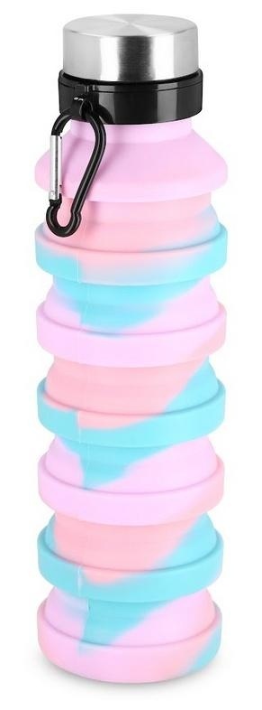 Składany bidon wykonany z silikonu, który nie pochłania zapachów i cechuje się dużą elastycznością. Bidon wyposażony jest w karabińczyk, ułatwiający przenoszenie produktu. Jest lekki, a po złożeniu zajmuje niezwykle mało miejsce i można przypiąć do torby lub plecaka.