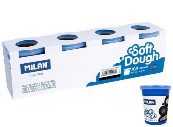 Miękka masa plastyczna. Spójna i elastyczna, łatwa do formowania. Nowe kolory można tworzyć łącząc dwa lub więcej kolorów. Nie pozostawia resztek na rękach. Opakowanie zawiera 4 kubeczki w kolorze białym o pojemności 116 g każdy z przezroczystymi pokrywkami. Naturalny skład, bezpieczny dla dzieci. Tylko składniki pochodzenia roślinnego: mąka pszenna, sól, barwnik spożywczy. Zawiera gluten.