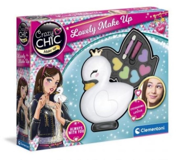 Zestaw kosmetyków Crazy chic w uroczej kosmetyczce-pudełku w kształcie łabądka. Delikatne kształty sprawiają, że kosmetyczka jest oryginalna i szlachetna, doceniana przez małe dziewczynki.