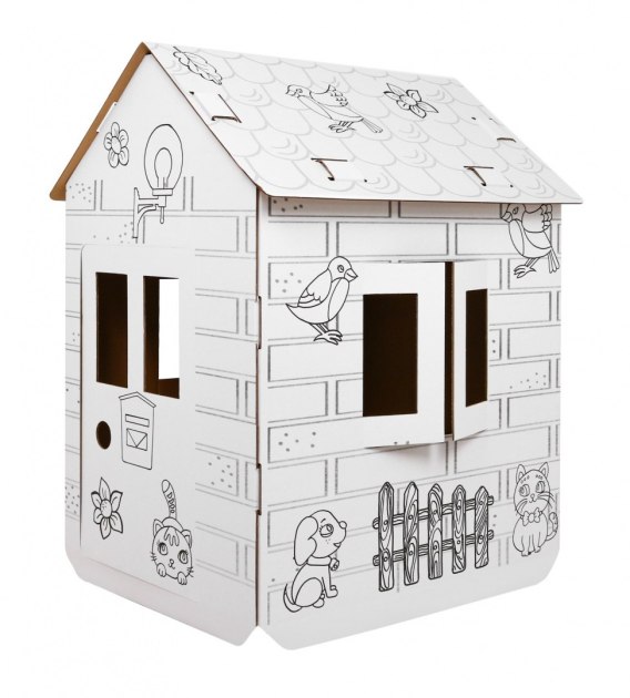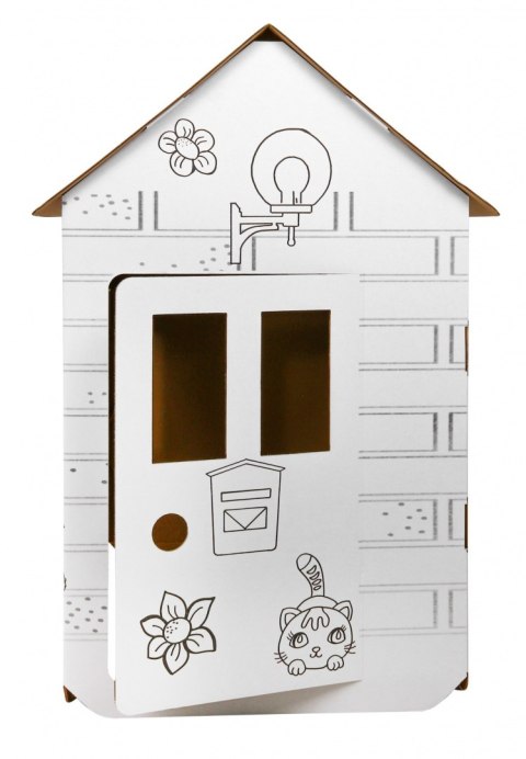 Domek z kartonu to propozycja dla dzieci od 3-go roku życia. Zabawka posiada ruchome elementy takie jak otwierane okna i drzwi. Poprzez zabawę tym domkiem dziecko pobudzi wyobraźnie, rozwinie kreatywność i zdolności plastyczne. Domek po złożeniu można pomalować (zestaw nie zawiera przyborów do malowania). Dostępna wersja dla dziewczynki i chłopca. |