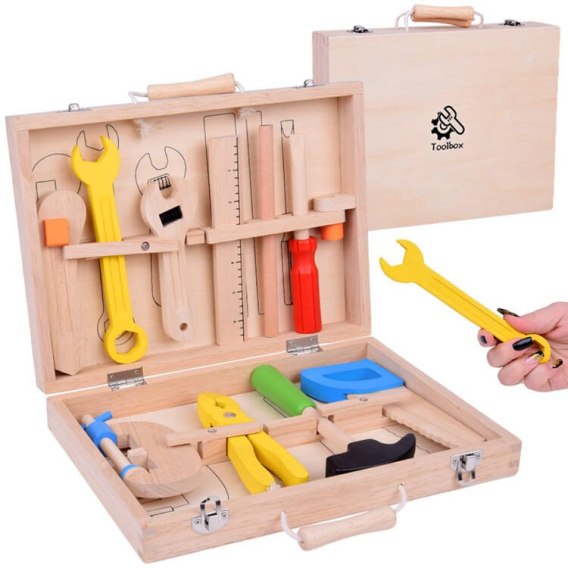 - Drewniana skrzynka narzędziowa to doskonały wybór dla małych majsterkowiczów! Zapewnia nie tylko godziny wspaniałej zabawy, ale także rozwija - zdolności manualne, wyobraźnię i kreatywność. Naśladowanie taty lub dziadka podczas prac remontowych zamienia się w ekscytującą przygodę.