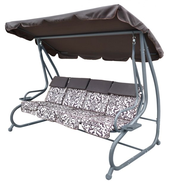 | Opis | Huśtawka ogrodowa z rozkładanym siedziskiem i regulacją daszka, ciemny brąz ze wzorem [8078 PATTERN CB] |