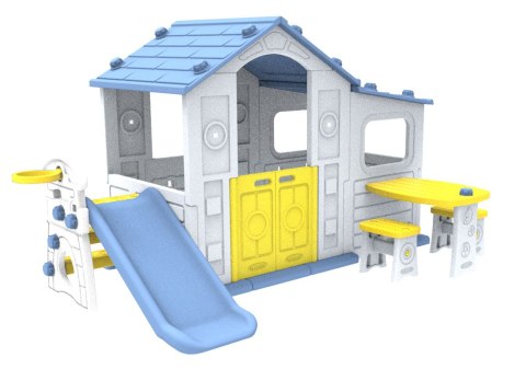 | Specyfikacja | Domek ogrodowy ze zjeżdżalnią, koszykówką oraz ze stolikiem |