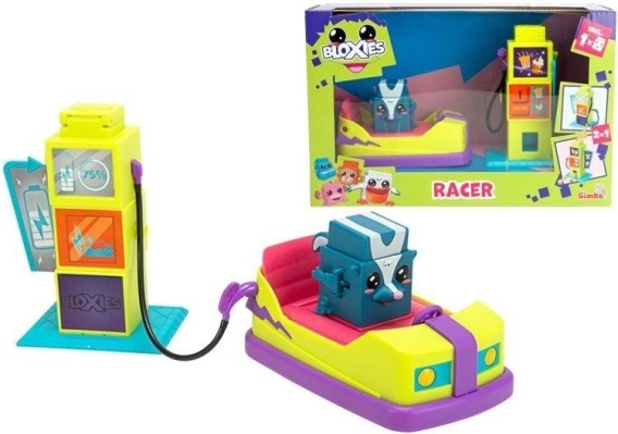 zestaw zawiera: figurkę Bloxies, pojazd, stację ładowania
