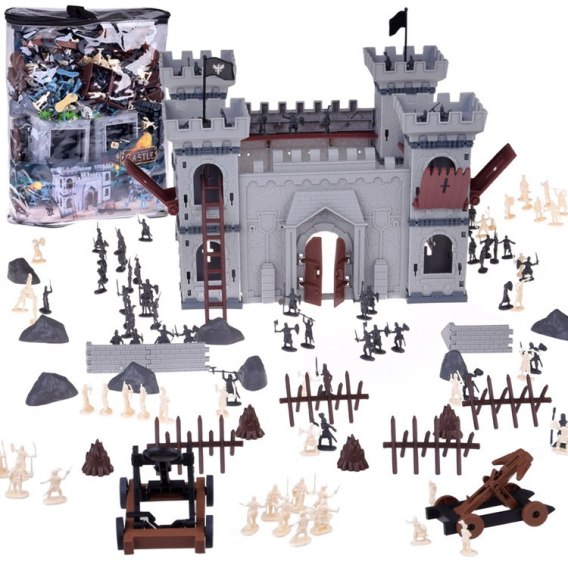 Żołnierzyki - zamek z figurkami to jedna z tych ponadczasowych zabawek, które znają nie tylko nasi rodzice czy dziadkowie, ale także wiele kolejnych pokoleń. Niemal każdy chłopczyk w dzieciństwie marzy o tym, by stać się bohaterem, a czy jest ktoś odważniejszy od żołnierza broniącego cywilów? Ten duży zestaw pozwala na wiele godzin fantastycznej zabawy, pełnych epickich bitew i niezapomnianych przygód. Z wieloelementowego zestawu można stworzyć nie jedną wojskową strategię, co pozwala rozwijać kreatywność i strategiczne myślenie. Figurki wykonane są z plastiku w militarnych kolorach.
