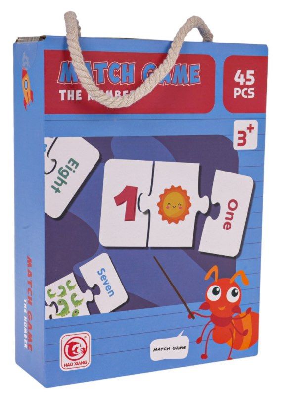 - 45 puzzli - 15 cyfr arabskich, 15 puzzli z rysunkiem różnej ilości rzeczy, 15 puzzli z nazwą cyfry w języku angielskim. |