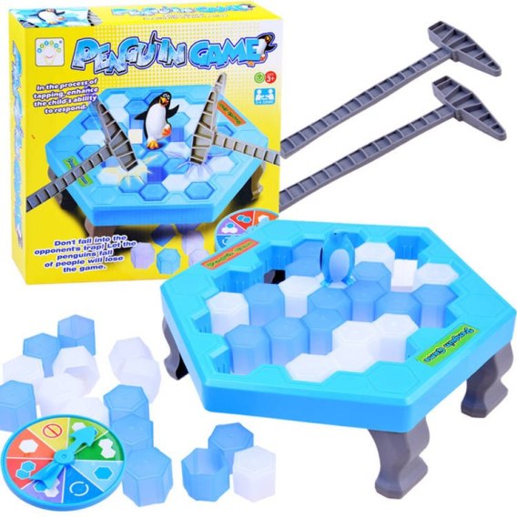 Gra polega na wbijaniu kostek lodu z ułożonej wcześniej tafli lodu, za pomocą młoteczka przez gracza tak, aby nasza tafla lodu nie załamała się wraz z pingwinem. Przed uderzeniem gracz najpierw zakręca kołem, losując które kostki lodu ma wybić. Jeśli strzałka trafi na pole żółte ze znakiem stop, gracza omija kolejka i kolejny gracz kręci strzałkom. Jeśli zatrzyma się na niebieskim polu z kółeczkiem gracz losuje jeszcze raz. Przegrywa gracz, który spowoduje załamanie się tafli wraz z pingwinem. Gra przeznaczona jest 2-4 graczy.