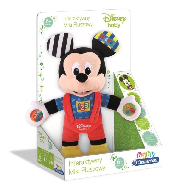 Słodki pluszak Baby Miki z mięciutkiego materiału stanie się najlepszym przyjacielem każdego dziecka. Dzięki 3 przyciskom na dłoniach i brzuchu Baby Miki będzie śpiewać śmieszne rymowanki - oryginalnym głosem Mikiego. Słodkie piosenki poprowadzą dziecko do nauki pierwszych liter, cyfr i kolorów z najbardziej ukochaną postacią Disneya.