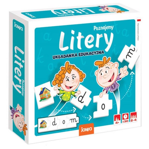 Jawa układanka edukacyjna "Poznajemy litery" powstała z myślą o dzieciach poznających alfabet i stawiających pierwsze kroki w nauce czytania i pisania.
