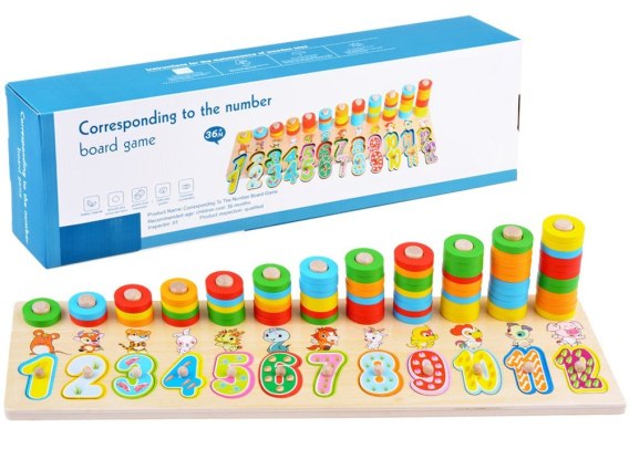 Kolorowa układanka drewniana z cyferkami i zwierzątkami to świetny patent naukę cyfr, kolorów i nazw zwierząt, poprzez zabawę już od najmłodszych lat. Jest to łatwy i przyjemny sposób na przyswojenie i utrwalenie liczb, poprzez dopasowywanie kształtów i kolorów do planszy oraz poznanie ich wartości przez układanie krążków na odpowiednich palikach. Dzięki temu iż cyfry są duże i pomalowane w różne wzorki, dziecko bez problemu będzie je układało i wyjmowało z planszy, a namalowane zwierzątka na pewno to ułatwią, przy okazji wskazując maluchowi co lubią najbardziej zjeść. Wszystkie elementy są dostosowane do malutkiej rączki dziecka. Niewątpliwym atutem jest to, że zestaw w całości został wykonany z drewna. Dzięki temu jest bardziej bezpieczny, wytrzymały i ekologiczny niż zabawki wykonane z plastiku.