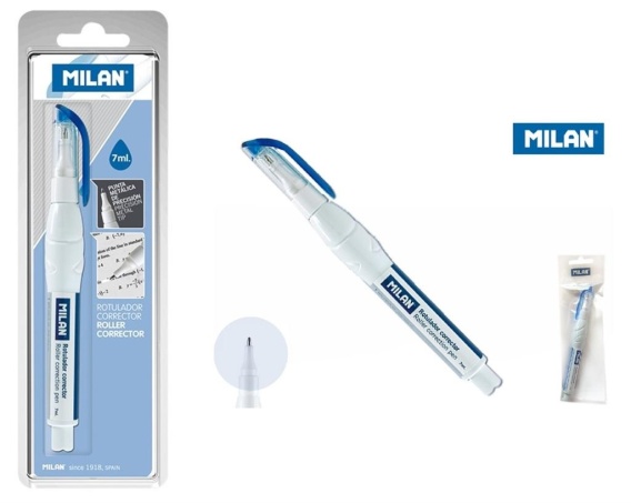 Korektor w piórze 7 ml z metalową końcówką. Ergonomiczny kształt. Poprzez naciśnięcie obudowy zwiększamy przepływ płynu.