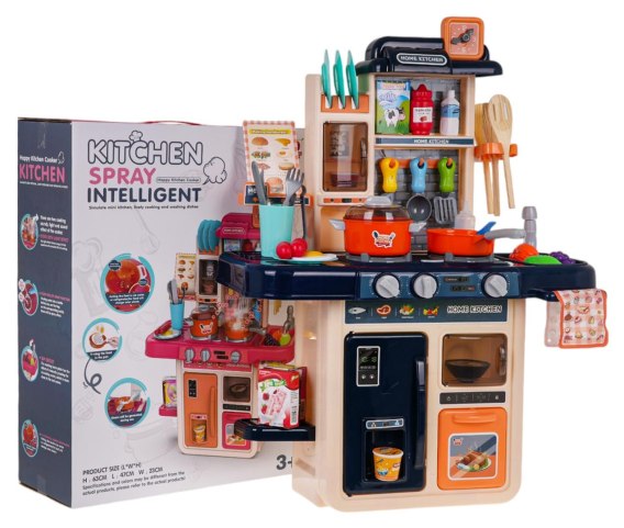 Multifunkcyjna kuchnia z funkcją światła, dźwięku, wody i pary dla dzieci powyżej 3-go roku życia. Kuchnia wykonana została z najlepszej jakości plastiku w żywych kolorach. Zestaw składa się z 42 elementów, jest bogato wyposażony w akcesoria kuchenne i atrapy produktów spożywczych. Kuchnia posiada działający kran, z którego leci woda, podświetlane palniki wydają odgłosy smażenia i gotowania, są też odgłosy wypadających kostek lodu, z palnika unosi się para wodna. Na wyposażeniu kuchni jest też lodówka, piekarnik i mikrofalówka. Szafki i półki pomieszczą wszystkie akcesoria. Zabawka zasilana jest bateriami typu 3 x AA 1,5 V (brak w zestawie). Funkcje zestawu kuchennego: - odpowiedni dla dzieci powyżej 3-go roku życia, - wykonany z najlepszej jakości plastiku, - funkcje dźwięku: odgłosy smażenia, odgłosy gotowania, odgłosy wypadających kostek lodu, - funkcje światła: podświetlane palniki, - para wydobywająca się z jednego z palników, - posiada otwieraną lodówkę, piekarnik, kuchenkę mikrofalową, - kranik z wodą, - zegar z ruchomymi wskazówkami, - mnóstwo akcesoriów. |