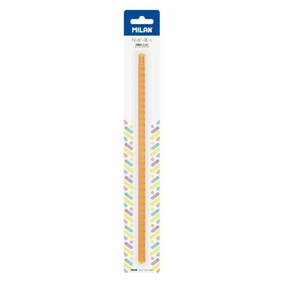 Linijka trójkątna 30 cm. Seria New Look, kolor pomarańczowy. Wykonana z trwałego i sztywnego tworzywa sztucznego. Pakowana pojedyńczo na blistrze.