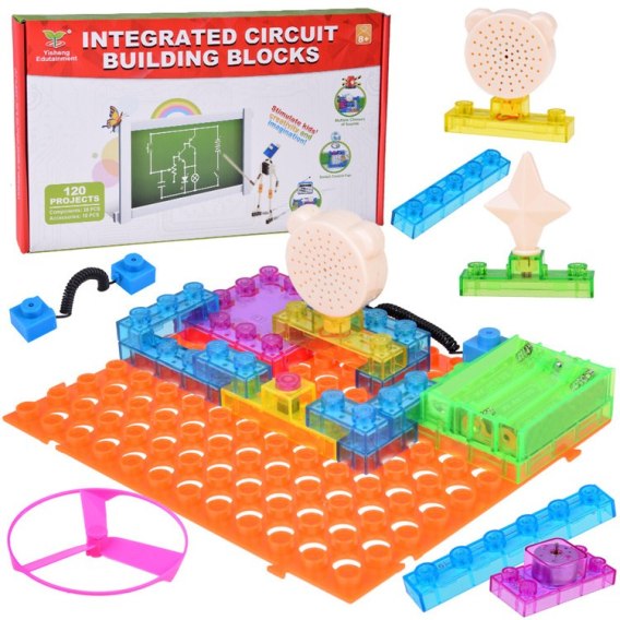 Dziecko, łącząc odpowiednie bloki, może zrozumieć, jak przewodzi się prąd, a efekty mogą być naprawdę imponujące - elementy zaczynają się obracać i świecić, co wzbogaca zabawę o dodatkowy wymiar. Dzięki zestawowi można stworzyć projekty, w których dźwięk towarzyszy obracającym się elementom lub świecącym diodom.