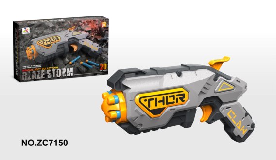 Krótki manualny pistolet Blaze Storm to propozycja dla dzieci od 8-go roku życia. Zabawkowa broń wyposażona została w mechanizm sprężynowy i nie wymaga zastosowania baterii. Obsługa pistoletu jest bardzo prosta, wystarczy załadować strzałki z przody pistoletu, nacisnąć mechanizm sprężynowy (żółta wajcha w górnej tylnej części) i nacisnąć spust. Zabawkowy pistolet dla dzieci jest bezpieczny, pociski wykonane są z miękkiej pianki zakończonej gumą. W zestawie znajduje się 20 pocisków (10 z gumowymi końcami i 10 z gumowymi przyssawkami).