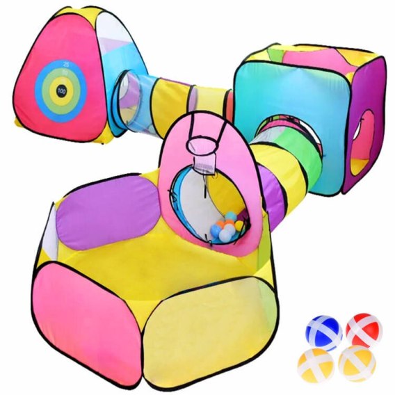 Ten zestaw ogrodowy dla dzieci oferuje nie tylko rozrywkę, ale również rozwija kreatywność i zdolności manualne dzieci, zapewniając im mnóstwo radości i zabawy w bezpiecznym środowisku. Samo rozkładalny zestaw namiot ma lekką konstrukcję przez co jest łatwy i szybki w rozłożeniu. Zabawa nigdy nie była taką frajdą, tunel daje możliwość swobodnego przechodzenia między pomieszczeniami. Można się nim bawić w ogrodzie, mieszkaniu, plaży ... Przewiewny namiot pozwoli na zabawę w każdym terenie.