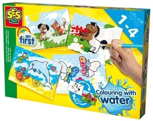 Magia z wodą i farbą - bez bałaganu! Z tym konkretnym zestawem SES jest to możliwe. Maluj mokrym pędzelkiem na szablonie, a zobaczysz jakie kolory ożywają. Pędzelek zrobiony jest z bezpiecznego włosia. Obrazki służą do wielokrotnego użytku. Zaraz po wyschnięciu możesz bawić się na nowo.