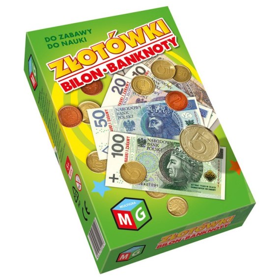 Imitacja polskich pieniędzy w bilonie i w banknotach. Produkt nadaje się doskonale do zabawy i może być wykorzystany jako atrakcyjny rekwizyt do różnego rodzaju gier. Jest także cenną pomocą dydaktyczną w poznaniu pierwszych informacji na temat operacji pieniężnych.
