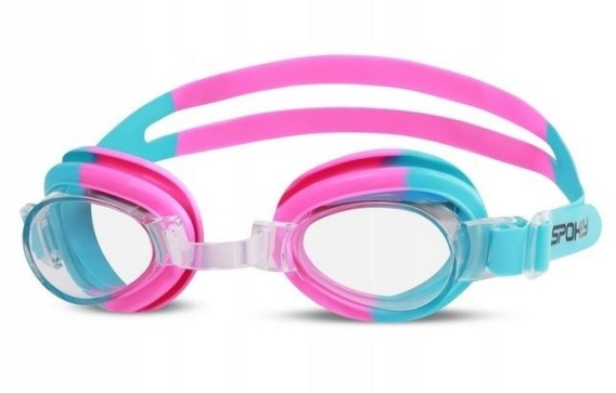 Okulary do pływania dla dzieci wykonane z wysokiej jakości, wytrzymałych materiałów. Wyposażone w powłokę Anti-fog zapewniającą doskonałą jakość widzenia. Dodatkowo szkła pokryte filtrem przeciwsłoneczny UV, dzięki czemu okulary mogą być używane także na basenach zewnętrznych. Dzięki miękkim, silikonowym uszczelkom, okulary optymalnie przylegają do twarzy, co zapobiega wpływaniu wody do środka okularów. Regulacja noska pozwala dopasować rozstaw okularów do twarzy dziecka. Podwójny silikonowy pasek ułatwia zakładanie okularów.