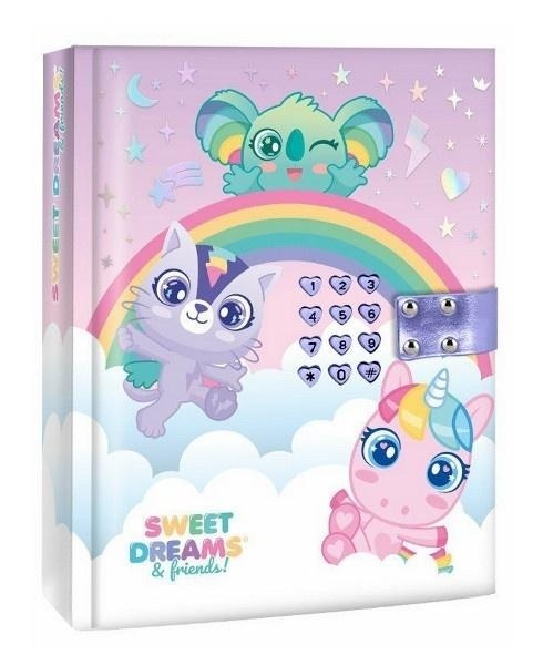 Gotowa na przechowywanie swoich sekretów w magicznym miejscu? Ten sekretny pamiętnik od Sweet Dreams & Friends to idealne miejsce do pisania i rysowania, co tylko chcesz, bez obawy, że ktoś się o tym dowie.Dzięki tajnemu zamkowi szyfrowemu tylko Ty będziesz mieć dostęp do swoich najbardziej wyjątkowych myśli i przygód. Chronione przez magię naszego jednorożca i jego przyjaciół, twoje sekrety zawsze będą bezpieczne i pełne magii