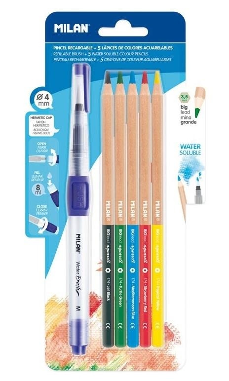 Pędzel wodny + 5 kredek akwarelowych MILAN