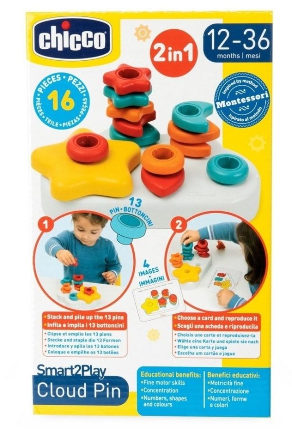 - 16 elementów, w tym 12 kolorowych wpinek, 1 dużą gwiazdę, chmurkę oraz 2 karty z zadaniami