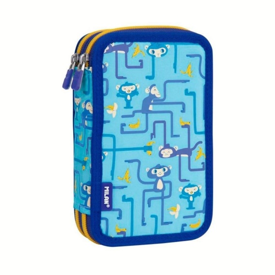 Piórnik piętrowy, dzięki któremu przybory szkolne będą zawsze uporządkowane i łatwo dostępne. Specjalna seria Tangled Monkeys, kolor niebieski.