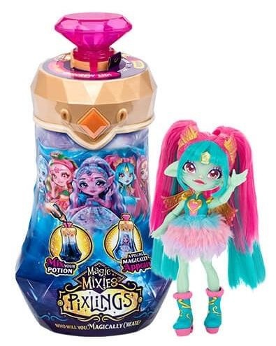 Stwórz magiczny eliksir i wyczaruj swoją własną laleczkę Pixlings od Magic Mixies. Zapewnij swojemu dziecku ekscytujący element zaskoczenia, dzięki któremu zabawa wzniesie się na zupełnie nowy poziom. W serii Pixlings znajduje się aż 5 laleczek, a do odkrycia każdej z nich potrzebne są inne składniki. Każda lalka ma 16 cm wysokości i 7 ruchomych punktów, dzięki itnieje możliwość ustawienia jej w różnych pozach oraz wspaniałe, długie włosy, które można czesać.