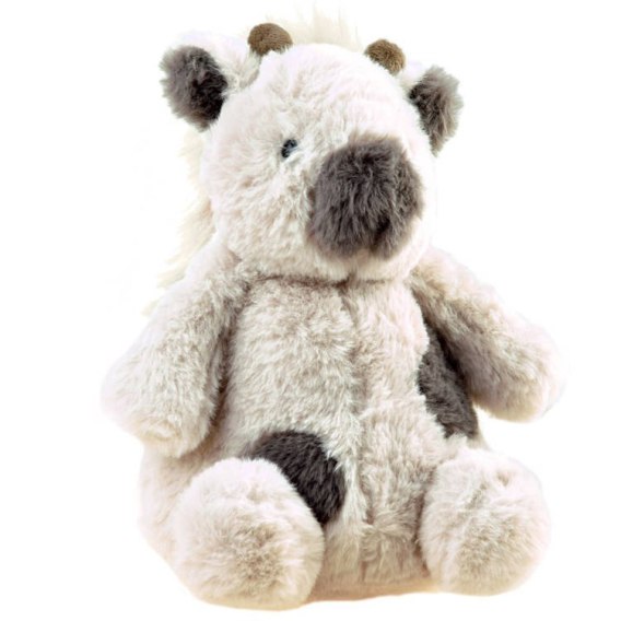 Urocza, mięciutka, słodziutka, pluszowa Krówka. Maskotka dla każdego, na każdą okazje, bez okazji, idealny piesek do tulania, głaskania. Krówka wykonany jest z mięciutkiego materiału, ma czarne plastikowe oczka, szare łatki, beżowe rogi. W dolnej części krówki wszyte są drobne kuleczki, które zapewnią stabilne siedzenie maskotki. Krówka jak to maskotka przyjmie wszystkie sekrety, tajemnice, posłucha z dzieckiem bajek i pojedzie na wycieczkę. Każdy uwielbia się do kogoś, czegoś przytulić a ona jest naprawdę tego warta.