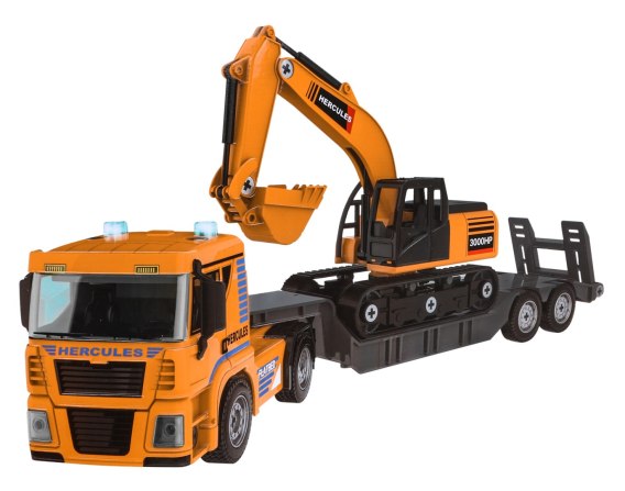 Duży, znakomicie wykonany zestaw ciężarówka z koparką do samodzielnego montażu to propozycja dla dzieci od trzeciego roku życia. Zestaw składa się z 185 elementów. Zabawka posiada efekty dźwięku i światła. Na górze ciężarówki mrugają światełka oraz słychać odgłosy zapłonu samochodu, cofania i klaksonu. Kabina ciężarówki pochyla się do przodu. Wkrętarko-wiertarka wydaje odgłosy podczas wiercenia czy wykręcania oraz świeci się niebieska dioda. Kabina koparki obraca się o 360 stopni a ramię z łyżką podnosi się w górę i w dół oraz wykonuje manewry nabierania i wysypywania. Zestaw zawiera 3 wymienne końcówki do koparki: łyżkę, wiertło oraz chwytak. Ciężarówka posiada gumowe opony, poradzi sobie z jazdą w różnym terenie. Zabawka zasilana jest bateriami typu 3 x 1.5 AG13 (w zestawie), wkrętarko-wiertarka bateriami 3 x AA 1.5V (brak w zestawie). Funkcje zabawki: - efekt światła - ciężarówka i wkrętarko-wiertarka, - efekt dźwięku - ciężarówka i wkrętarko-wiertarka, - pochylana do przodu kabina ciężarówki, - obrót kabiny koparki o 360 stopni, - ruchome ramię koparki, - wymienne końcówki do koparki, - gumowe opony, - napęd friction, |