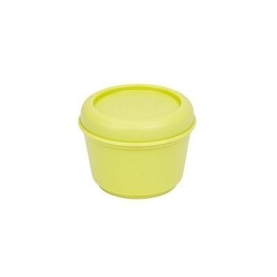 Okrągły hermetyczny pojemnik na lunch, kolor żółty, seria SUNSET. Zakręcana pokrywa zapewnia hermetyczne zamknięcie. Nadaje się do podgrzewania w kuchence mikrofalowej (maks. 70 stopni) z otwartą pokrywą dla uwolnienia pary. Odpowiednie do przechowywania w zamrażarce (do -20 stopni) i do mycia w zmywarce do naczyń (maks. 70 stopni). Pokrywy i pojemniki można łatwo łączyć ze sobą. Matowe zewnętrzne wykończenie dla lepszego chwytu zaś wnętrze z błyszczącym wykończeniem ułatwia czyszczenie. Materiał: tworzywo sztuczne wolne od BPA. Rozmiar: 10 x 7 cm. Pojemność: 0,25 litra.