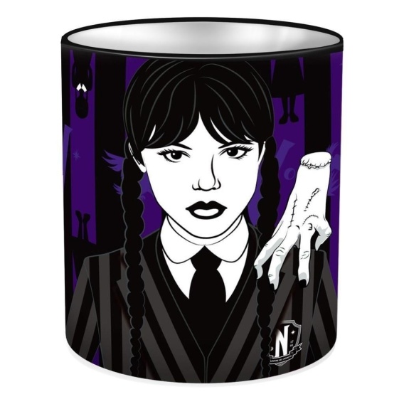 Metalowy pojemnik na przybory szkolne. Wymiary: 10x11 cm.