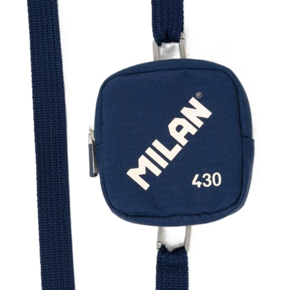 Mała niebieska portmonetka na monety i karty, zapinana na zamek błyskawiczny. Zawiera praktyczny aluminiowy karabińczyk umożliwiający przenoszenie kluczy lub zawieszenie portfela na torebce lub plecaku. Z tyłu posiada pasek umożliwiający przypięcie paska dla wygodnego i bezpiecznego noszenie torebki. Tkanina zewnętrzna Ripstop: lekka i odporna na rozdarcia. Wykorzystuje specjalną technikę, która tka grube, wzmacniane nici w regularnych odstępach, tworząc wzór krzyżowy. Wytłoczone logo. Kolekcja 430 since 1918 jest inspirowana oryginalnymi kolorami i wzornictwem gumek MILAN produkowanych w Hiszpanii od 1918 roku. Skład tkaniny: poliester. Wymiary: 10,3 x 10 x 2,5 cm. Pielęgnacja: pranie ręczne max. 30. Nie wybielać. Nie suszyć w suszarce bębnowej. Nie prasować.