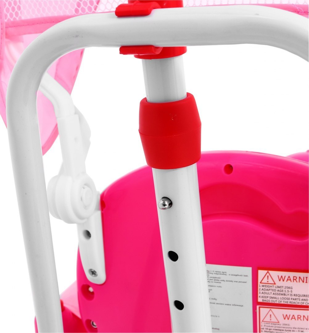 3-kołowy Rowerek dla dzieci Słonik Różowy + Dźwięki + Daszek + Barierka + Podnóżek + Rączka + Schowek
