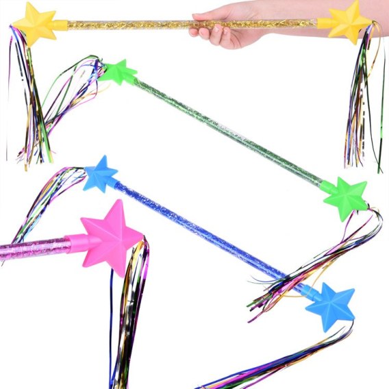 - Lekka i wytrzymała: Różdżka wykonana jest z lekkiego plastiku, z dekoracjami w postaci kolorowych wstążek oraz koralikami wewnątrz, dla uzyskania dodatkowego efektu.