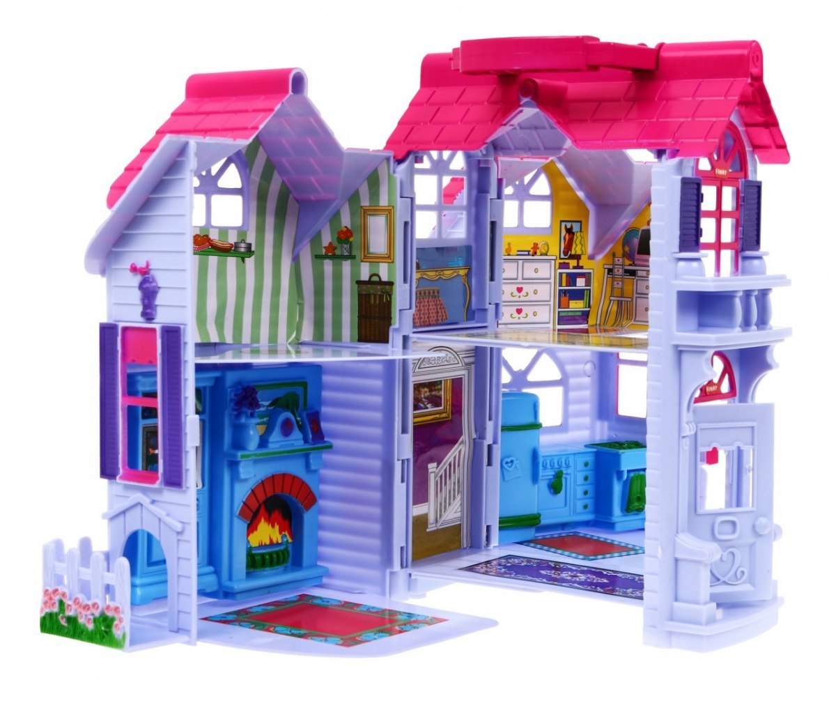 | Niesamowita, rozkładana, piętrowa willa z otwieranymi drzwiami, oknami, pomieszczeniami oraz uchwytem do przenoszenia. W środku domku znajduje się przedpokój, kuchnia, salon, pokój, sypialnia, łazienka. Zabawka pobudza wyobraźnię przestrzenną dziecka. Spodoba się z pewnością każdej dziewczynce. Zabawka przeznaczona jest dla dzieci od 3-go roku życia i posiada certyfikat CE. |