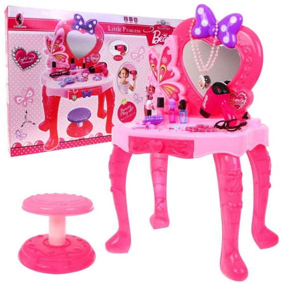 Różowa Toaletka dla dziewczynek 3+ Interaktywna suszarka + Światła + Akcesoria do stylizacji