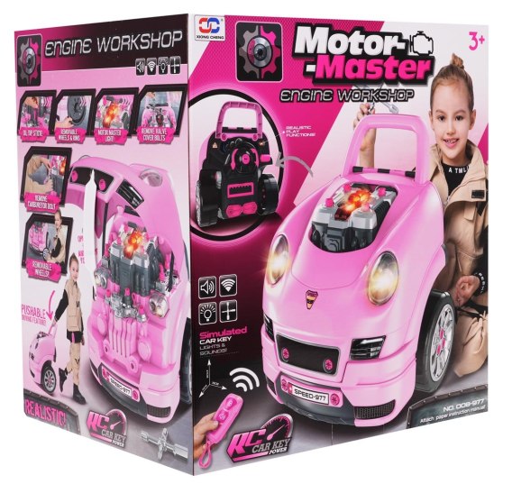 Różowe autko z silnikiem do Naprawy dla dzieci 3+ Narzędzia + Interaktywny kokpit + Pilot Zestaw małego Mechanika