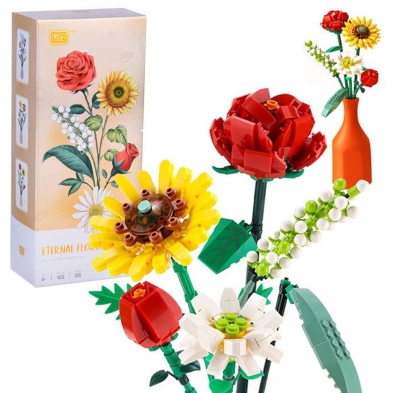SERIA KWIATY Klocki konstrukcyjne Bukiet kolorowych kwiatów 568ele ZA5346