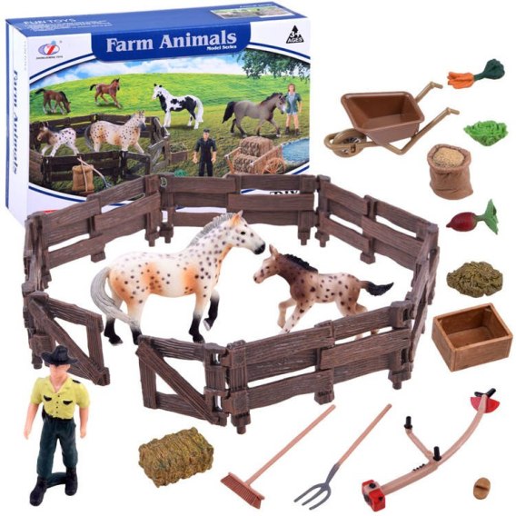 Zestaw „Koniki z zagrody" zawiera wszystkie elementy, które są niezbędne do stworzenia pełnej, funkcjonalnej farmy: