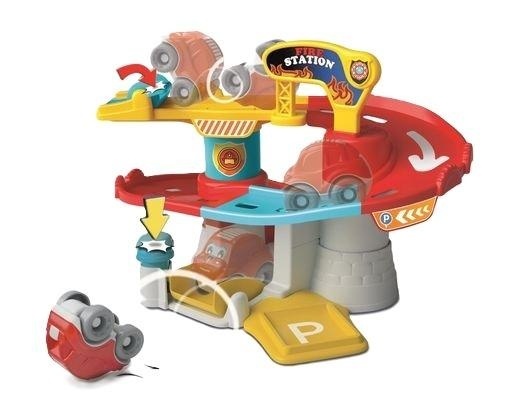 Remiza strażacka z torem, po którym mogą pędzić Przewrotne Samochodziki, oraz dwoma stanowiskami do salt! Samochód pędzi po torze i dzięki dźwigni i przyciskowi przewraca się, wykonując zabawne salta. Zestaw jest częścią serii Przewrotne Samochodziki, składającej się z różnych samochodów, które można kolekcjonować i które wykonują salta! Produkt w 100% Made in Italy. Odkryj wszystkie samochody i produkty z serii i poznaj świat salt!