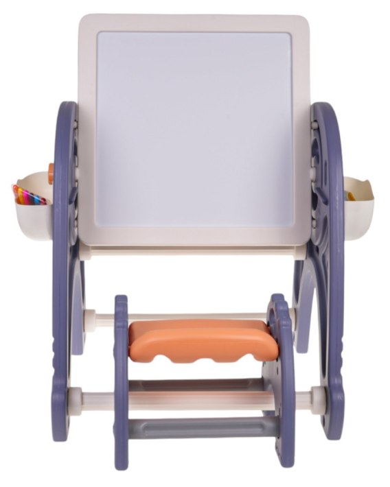 Zestaw 4 w 1, tablica, stolik, podkładka do układania klocków i krzesełko dla dzieci od 3-go roku życia. Zestaw wykonany został z najlepszej jakości plastiku, nie posiada ostrych krawędzi i jest stabilny. Na plastikowych nóżkach umieszczona jest tablica, którą można pochylać pod dowolnym kątem i obracać. Z jednej strony mamy tablicę do malowania a z drugiej podkładkę do układania klocków. Z tablicy i podkładki możemy korzystać w pozycji pionowej lub poziomej. W pozycji poziomej możemy korzystać z zestawu jak ze stolika do malowania, nauki czy jedzenia lub podstawki na klocki. Do zestawu dołączono gąbkę oraz 6 mazaków. Po bokach zestawu znajdują się również dwa kosze na przybory do malowania. Zestaw rozwija wyobraźnie i umiejętności poznawcze dzieci. Funkcje zestawu: - przeznaczony dla dzieci od 3-go roku życia, - wykonany z bezpiecznych materiałów, nie posiada ostrych krawędzi, - wiele możliwości zabawy: * stolik do malowania, * stolik do nauki lub zabawy, * podstawka do układania klocków, * tablica do malowania, - stabilne krzesełko, - rozwija wyobraźnię i umiejętności poznawcze dzieci. |
