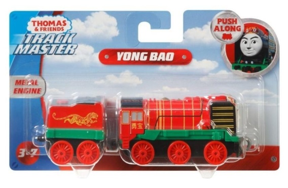 Kolejka z serii Trackmaster świetnie odwzorowuje bajkowego bohatera. Nie posiada napędu porusza się wyłącznie popychana rączką dziecka. Z przodu i z tyłu lokomotywy znajdują się plastikowe haczyki, dzięki którym połączymy ją z wagonikami lub innymi pojazdami z linii.