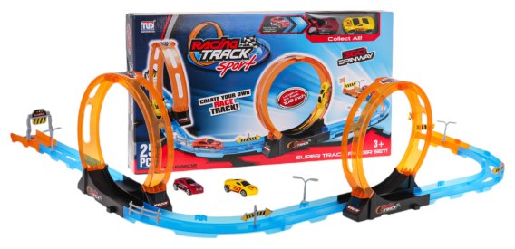 Tor wyścigowy z dwoma pętlami 360 stopni dla dzieci od 3-go roku życia. Tor wykonano z najlepszej jakości plastiku w żywych kolorach. Na zestaw składa się 25 elementów do samodzielnego montażu. Tor posiada odcinki proste do rozpędzenia pojazdu, 2 pętle 360 stopni i dwa pojazdy. Pojazdy napędzane są napędem pull back. Wystarczy delikatnie nacisnąć pojazd do tyłu, by przejechał tor z pełną mocą. Funkcje toru: - odpowiedni dla dzieci od 3-go roku życia, - wykonany z najlepszej jakości plastiku w żywych kolorach, - pojazdy z napędem pull back. |
