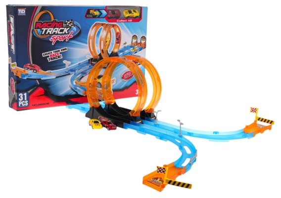 Podwójny tor wyścigowy z wyrzutnią dla dzieci od 3-go roku życia. Tor wykonano z najlepszej jakości plastiku w żywych kolorach. Na zestaw składa się 31 elementów do samodzielnego montażu. Tor posiada odcinki proste do rozpędzenia pojazdu, dwie pętlę 360 stopni i dwa pojazdy. Pojazdy napędzane są napędem pull back. Wystarczy delikatnie nacisnąć pojazd do tyłu, by przejechał tor z pełną mocą. Funkcje toru: - odpowiedni dla dzieci od 3-go roku życia, - wykonany z najlepszej jakości plastiku w żywych kolorach, - pętle 360 stopni, - możliwość zabawy dla dwóch osób jednocześnie, - pojazdy z napędem pull back |