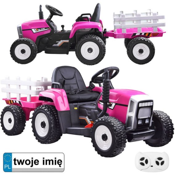Fantastyczny traktor z przyczepą dla każdego małego kierowcy zapewni mnóstwo wesołej zabawy. Traktor z efektami dźwiękowymi i świetlnymi, panelem muzycznym będzie pasował do każdego gospodarstwa. Traktor posiada komfortowy fotel obszyty ekoskórą, lewarek do zmiany biegów, oraz kierunku jazdy, włącznik do świateł. Wolny start w pojeździe zapewni komfortowe ruszanie maszyną. Dwa mocne silniki i akumulatory zapewnią dotarcie w każde miejsce.