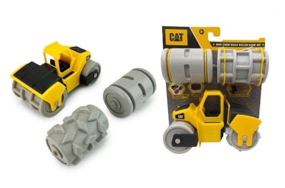 - Walec drogowy: Zabawka wiernie odwzorowuje prawdziwy walec drogowy marki CAT, co dodaje autentyczności podczas zabawy. Walec jest wyposażony w ruchomy bęben, który symuluje proces zagęszczania nawierzchni.