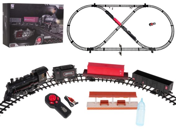 Trasa kolejki ma kształt elipsy o wymiarach ok. 181 cm x 78 cm. Podczas jazdy lokomotywa wypuszcza z komina dym (po wcześniejszym uzupełnieniu jej wodą - pipetka do wody dołączona do zestawu), dodatkowo świeci się światełko zamontowane w części frontowej. Tory posiadają łatwy sposób łączenia, dzięki temu są bezpieczne i wytrzymałe w użytkowaniu. Pilotem możemy kontrolować jazdę kolejki do przodu, do tyłu, prędkość jazdy, sygnały dźwiękowe i funkcje pary.