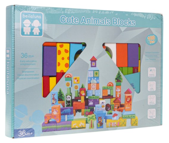 Zestaw Drewnianych Klocków Zwierzątka 100el.